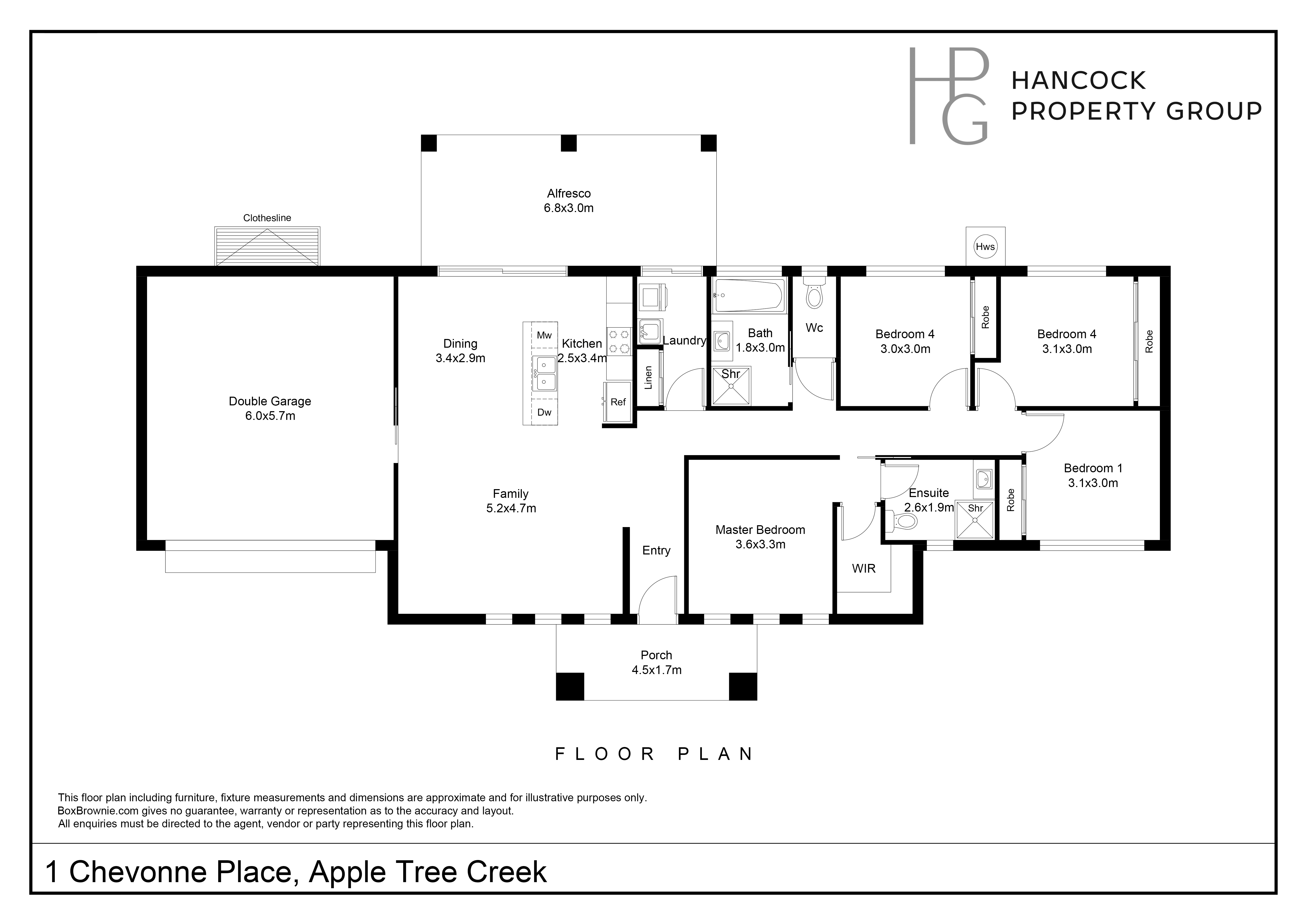 The spacious master bedroom provides a private retreat, complete with a walk-in wardrobe and sleek ensuite. Three additional bedrooms are well-sized and include built-in wardrobes, making the home ideal for growing families or guests.